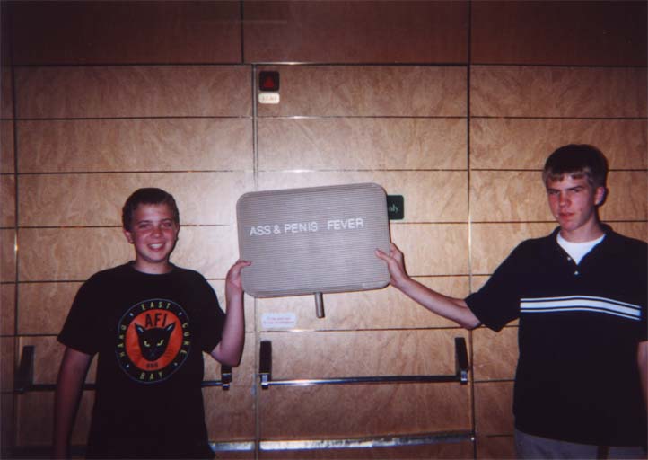 This is my official post regarding my cruise on the Baltic with THE Olsen twins. I'd like to arrange all my these thoughts/events in chronological order but it's sorta hard to remember exactly what happened when. I wish I'd kept a journal of funny stuff while on the cruise because I'm sure I'll leave some stuff out. Anyway, I'll just be organizing this post into sections based on the topic instead of the date. All of the really good stuff is at the end but I think there is some somewhat interesting stuff in my descriptions of the European cities (especially anything with pictures). Please view all the pictures, I've made them relatively low quality so they should load quickly. I know this post is long but don't skip around, read one section, eat some delicious pretzels, then move on to the next. Before the Cruise Before the cruise we stayed in New York for a few days before flying to Stockholm, Sweden. But before we were in New York, we were at the airport in LA where I had an encounter with another funny/only-semi-famous celebrity. That celebrity was Matt Pinfield of MTV ... and I didn't really have much of an encounter with him ... I just saw him. When we were checking our bags and stuff he ran up to the counter ... did something that took like 5 seconds and ran away. He was literally running so it was sorta funny. Sadly, I didn't have my camera on me that early in the trip so I didn't get a picture. New York was pretty dumb. I don't know why anyone would want to live in such a crowded, dirty city. Stockholm, Sweden This is where the cruise started and ended. Sweden is pretty nice and modern and there were some good-looking girls there. At the airport in Sweden I saw the funniest thing: view this first, then this, now a far away view so you can tell it's in an airport terminal. Weird, eh? Tallinn, Estonia Estonia is a thoroughly stupid country. It's filled with theiving gypsies and the like. I saw some pretty interesting graffiti though. One thing I saw (I wish I had a picture) was just a picture of a cartoony chicken head that said "Chikken" under it. It was funny because it was next to graffiti of anarchy signs and stuff that said something about there being no God (in poor English). There were a bunch of people there selling watches. The watches were either stolen or those ... fake designer watches. The people (gypsies, I think, but they were dressed like normal people) would come up to tourists and say "shopping?" and "money?" It was funny because those were the only two words they knew and they tried to convince you to buy the watch using only those words. As if when you just saw the watch you were thinking "Naw, I don't want a watch" ... but after they said "Shopping?" you were like "Shopping ... hmm ... Yeah! Shopping!" St. Petersburg, Russia St. Petersburg has a lot of cool old buildings and monuments and stuff ... but it's also really worn-down and dirty. There are tons of street vendors trying to sell stuff to tourists. There are only a few different things the street vendors sell and EVERY street vendor sells 'em. Nothing unique. All they sell is old soviet military hats, tee-shirts, stamps, coins from the soviet era, lacquer boxes, those dolls that have little-er dolls inside of them, and post cards. A lot of the vendors spoke English pretty well but they had the funniest accents. I'll teach you how to speak in a true Russian accent. Try this common phrase: "Four dolls, ten dollars." All you have to do is pronounce all of the O's as long O's (so "dolls" rhymes with "poles" or "holes", and so "dollars" sounds like "dole-ers"). When we were on this bus tour we would stop at certain locations of interest and, of course, the vendors would be there because they knew tourists passed through there. Once as we were getting off the bus a Russian vendor said the funniest thing ... he said "What about hats." That may not sound that funny to you right now but at the time it was pretty hilarious. It was funny because there were no other vendors around so its not like we were looking at something else and he's offering an alternative ("What about hats - as opposed to post cards"). He also said it with no expression in his voice, notice my lack of a question mark. Anyway, after that time, whenever we saw a vendor selling hats we'd say "What about hats." to them. They always got really excited and thought we were gonna buy hats. Ha. Also, once my perfected my Russian-street-vendor-accent whenever I passed by a vendor I would haggle with him while using my accent. Him: "Four dolls, ten dollars", me: "Eight doles, one doh-lar!" <- That is something I actually said and the vendor got first confused then mad ... I think he got mad because I was laughing. Here are some pictures of gypsies. There were a lot of gypsies with babies on their backs, like this one. The babies always looked dead ... rather strange. There were also a lot of thieving child gypsies, like these two. My dad has a great picture of the one on the left reaching into some guy's bag. I'll try to get the picture and post it. Helsinki, Finland Finland is the "most online nation" according to OlsenTwins.com. And it's true. While I was there I saw quite a few cyber cafes. I even stopped by one which had free internet access and checked out this fine site. Nothing really interesting happened there though ... but it is a fairly modern and nice place. There's like no crime. All public transport is practically based on the honor system. Once you buy a ticket for these bus-trolly-car-type-things you can use it for any public transport for the next hour ... but the driver never even really checks if you have a ticket. Visby, Gotland (Sweden) This was the last stop on the cruise before going back to Stockholm. Gotland is an island owned by Sweden ... I didn't even get off the ship to see it. For whatever reason, the docks were full and we had to get to shore in "tenders" ... I don't know if your average person knows what that is (I didn't