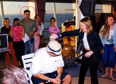 I forgot a somewhat major event that should've gone in my last post. It would fit best between the third and forth paragraphs of the "Olsen Twins related stuff" section. If you haven't read my previous post, read it first. After I had my picture taken ... but before the bodyguard stole my "kraproom.com" sign, I talked to the Olsen twins in the ship's "disco." I think the part about my sign getting stolen and me saying "Hey!" and showing him the sign were like ... a day later than I thought they were. I don't really remember. Anyway, the Olsen twins and their entourage were sitting in the "disco" just talking er whatever and I walked up right behind the couch they were sitting on and asking them if they would hold the "kraproom.com" sign and let me take a picture (this would be my second time asking). Again they said no and gave the reason that they "don't do free endorsements." I tried to convince them it wasn't really an endorsement, just a picture for myself. They kept saying no and accusing me of planning on using it to advertise my site (pshh!). I argued with them for a little while longer by just repeatedly asking them "Why not??" (all their friends were watching and stuff ... kinda funny). Eventually their bodyguard stood up and took me aside and said the same things they did ... that they don't do free advertising. He said "You know how it is. Everyone wants their endorsement these days." I responded "Yeah, I know what it's like ... being a big star myself." He said "Yeah" and rolled his eyes. What a jerk. I starred in such hits as "Three Ninjas" and "Three Ninjas II." |
