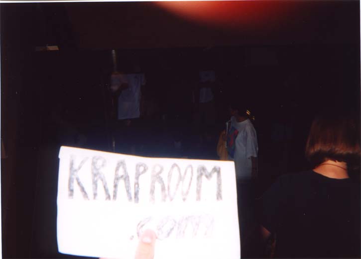 I got 'em back but for whatever reason the place I got them developed at wouldn't make a photo CD. Now I need to find a place to get them scanned ... so if you know me in real life IM me or mail me if you wanna be the lucky one to get to scan these pics. The picture of me with the Olsen twins isn't framed correctly! My damn cousin has bad aim or something. You can't even see my "Kraproom.com" sign ... but at least it has me with the twins ::sigh:: ... and you can tell I was holding some sort of paper. |